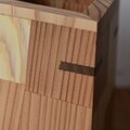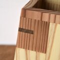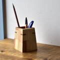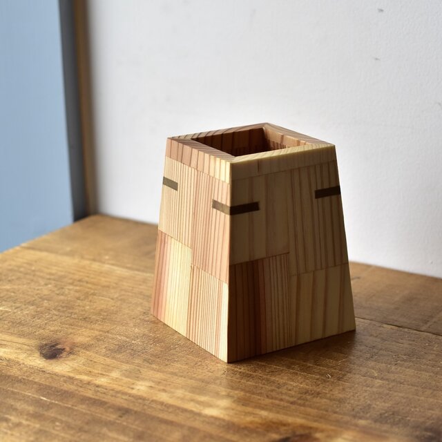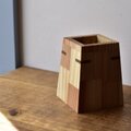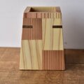 小さい杉の端材を貼り合わせて作った四角形のペン立てです。
