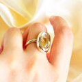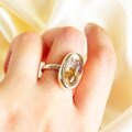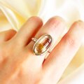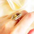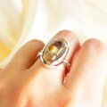 透明感のあるクォーツの中に、繊細なゴールドカラーの針状結晶が浮かぶルチルクォーツ。自然が生み出す独特の模様が、シンプルなリングデザインに個性と存在感を添えます。