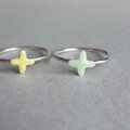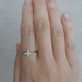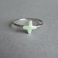 春の芽吹きを思わせる、やさしいミントグリーンの十字モチーフが印象的なリングです。