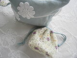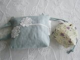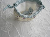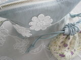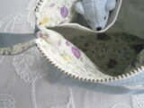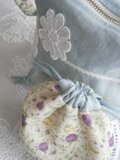 *色 淡いブルー 花生地→ベージュ地にクスミのある紫・黄等の小花