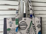 本体と持ち手は補強して縫い付けていますが、あまり重いものを入れることにより破損する場合がありますのでご注意ください。