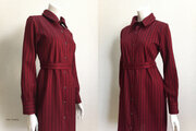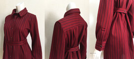 播州織、先染めジャガード生地(綿ポリ混紡)を使用しましたシャツ型の長袖ワンピースです。
