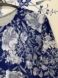前見頃と袖はロイヤルブルー地に花柄で、後身頃はグレーの無地です。