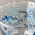 水色・青色・薄紫色・紺色のガラス棒を短く切り
