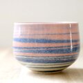 こちらの器には赤と紺の顔料を使用して色付けした三色の陶土を使用しています。
