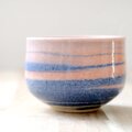 こちらの器には赤と紺の顔料を使用して色付けした三色の陶土を使用しています。