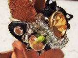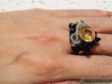 トパーズカラーの大きめなビジューが付いた、牛革が台座の、珍しいリングです。
