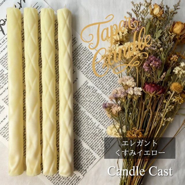 エレガントテーパーキャンドル・くすみイエロー(4本セット)ソイキャンドル