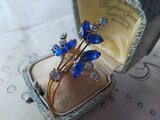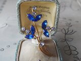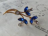 1940-50年代頃のヴィンテージ、サファイアBlueとクリアーGlassの涼し気で儚いような美しいブローチです。