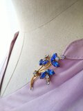 ヴィンテージ サファイアBlueとClear/お花のブローチ 約47×28㎜