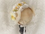 コットンリネンをベースに染め花のビオラや小花を飾りつけたヘッドドレス。