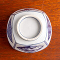 平安文泉 京焼 染付太公望帆船文 四方鉢 E373