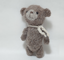 モヘア素材の細い毛糸を使用し、愛らしい表情をしたベアを編みました。