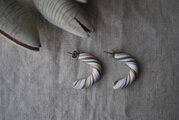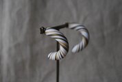 色を重ねて混ぜてマーブル模様をつくったり、削って独特のカクカクっとした形にしたり、まるっとさせたりと一点一点いろんな表情をもつ楽しいピアスです。