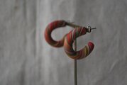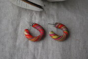 色を重ねて混ぜてマーブル模様をつくったり、削って独特のカクカクっとした形にしたり、まるっとさせたりと一点一点いろんな表情をもつ楽しいピアスです。