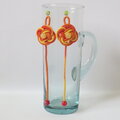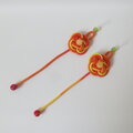 橙の江戸打ち紐で花の形に飾り結びをしました。