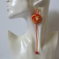 花芯にアラゴナイトを、その他とんぼ玉も添えた、オレンジグラデーションのピアスです。
