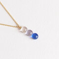 ブルー グラデーション*3色粒ガラスネックレス*14KGF