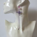 ローズクオーツととんぼ玉を添えた、軽いピアスです。