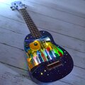 ウクレレ本体を波型にくり抜き、そこへ宵の街を詰め込んでみました。