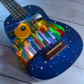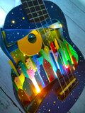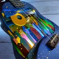 ウクレレ本体を波型にくり抜き、そこへ宵の街を詰め込んでみました。