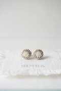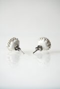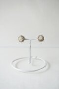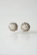 フランス製のアンティークのガラスビーズとヴィンテージのメタルビーズを一針一針刺繍を施したピアスです。1mm弱と繊細で小さなオフホワイトのアンティークビーズを内側に、周りにはとても希少なメタルのヴィンテージビーズを刺繍しました。メタルのヴィンテージビーズは細かなカットが入っており角度によって落ち着きある輝きを放ちます。