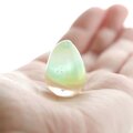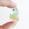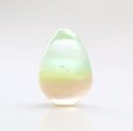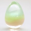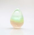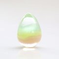 春を感じさせるそれらのガラスを重ね合わせ、無色透明のガラスで包み込んで仕上げた、あたたかで瑞々しい雰囲気を持つ雫型の小さなガラスオブジェです。
