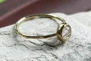 K18ゴールドリングのシャンク(腕部分)には、金槌の槌目を残して磨いてあります。