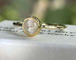 有機的で温もりのあるテクスチャーが、カボションカットの白く高貴なキャッツアイ・トパーズと