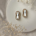 長方形のクリスタルを主役にした、シンプルなアクセサリー。