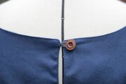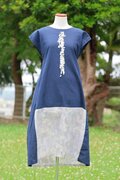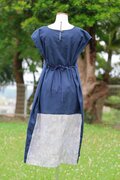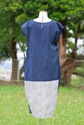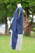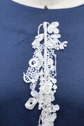 今回は、ヴィンテージリネンのネイビーに、コットンリネンの花柄の生地を合わせた襟元のレースの飾りが可愛いワンピースを作成しました。