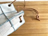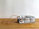 8箇所のハトメに革ひもを通して仕上げたバッグ。腕にかけたり、肩からも掛けられます。斜めがけも可能です。