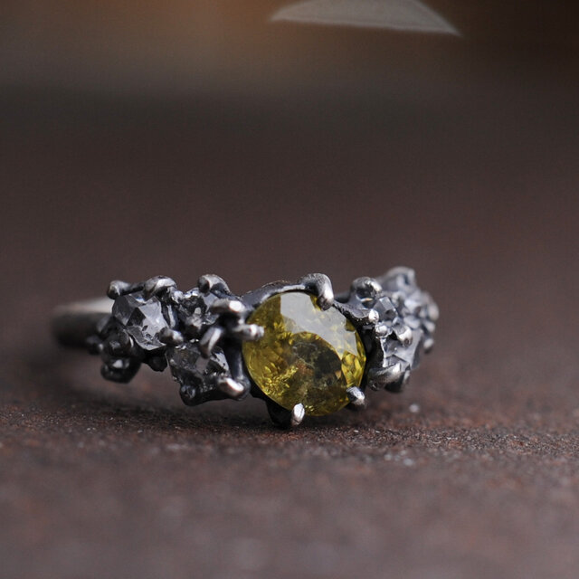 こちらは「光らない燻し仕上げ」となっております。石留めの爪だけを軽く光らせて仕上げており、