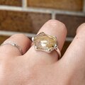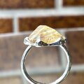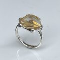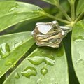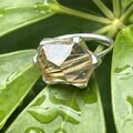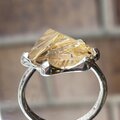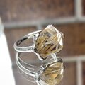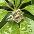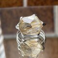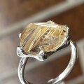 スモーキーな ルチルクォーツ 変形6角形 立体ラフカット 爪留め シルバーSV925リング