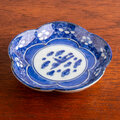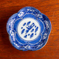 古伊万里 染付白抜き花鳥文輪花小皿 江戸後期 E1710B