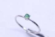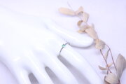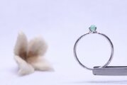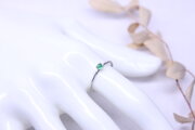 繊細なデザイン、細やかなテクスチャ、留められた硝子の美しさ。 モノクロ世界の銀色の葉に乗った朝露が そこだけ天然色を得たように緑色に光る… 光の加減によってはエメラルドの様でもあり 又パライバの様でもある朝露の色に 度々目を奪われ見惚れてしまいます。 形状上着用時に服などへのひっかかりは感じますが この指輪を着けらる幸せに比べればなんでもありません! 素敵な作品をお譲りいただき有難うございました!