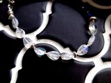 インド産・宝石質の美しいレインボームーンストーン(ホワイトラブラドライト・ペアシェイプカット型)とラピスラズリをソフトタイプのワイヤーに通してつないでいったブレスレットです。