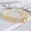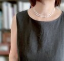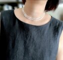 小粒ポテト型で少々フラットな淡水パールの2連にもなるロングネックレス。