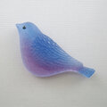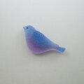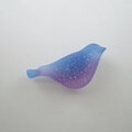 ガラスの小鳥にはフロスト加工を施してあり、光を通した時に 青と紫のグラデーションが重なり合って 紫陽花のような色合いに。