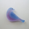 ガラスの小鳥にはフロスト加工を施してあり、光を通した時に 青と紫のグラデーションが重なり合って 紫陽花のような色合いに。