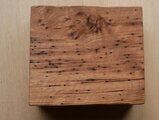虫食い穴のある表情豊かな栗材を、刳り込んで製作した角箱です。