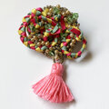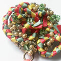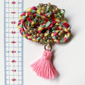紅女 joncher ビーズリボンタッセルくるくるブローチ(ピンクグリーン)