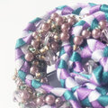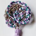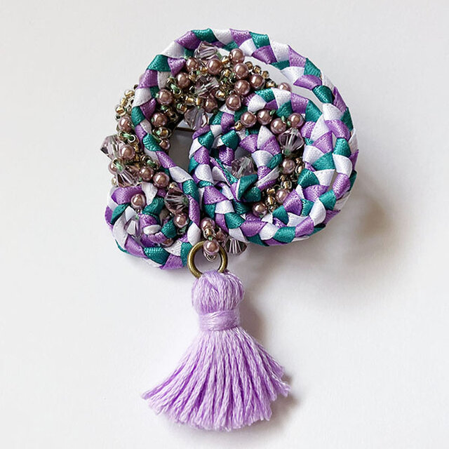 紅女 joncher ビーズリボンタッセルくるくるブローチ(パープルグリーン)