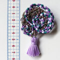 ビーズやタッセルのカラーをリボンに合わせて、異素材ながら統一感を持たせています。