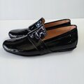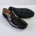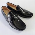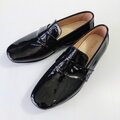 人気のエナメルレザーをアッパーに採用し光沢と艶感を与えて高級感のあるドレスシューズに仕上げました。中敷には本革の高級革を使用しソールは軽量合成ゴムのグリップ力のあるドライビングソールを使用しています。雨天でも滑りにくい素材となっております。