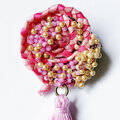 紅女 joncher ビーズリボンタッセルくるくるブローチ(ピンク)