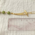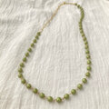 着け方5通り!アレンジして楽しむアクセサリー、マットな鶯(うぐいす)色パールのマンテルネックレス No.C814
