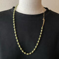 とっても軽いツヤ消しマットなうぐいす色のパール(樹脂パール)と、一粒が長いチェーンのネックレスです。