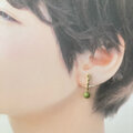 【とろりと流れるメタルと、ツヤ消しマットな鶯(うぐいす)色パール1粒イヤリング】