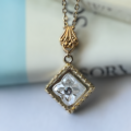 お話はフォイルのないクリアガラスですので、台もクリアガラス(12mm)を使用しました。とても涼しげなネックレスです。